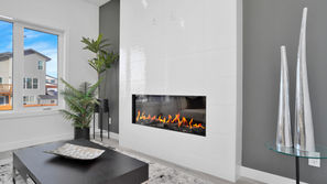 Designer Upgrades: Cabinets to ceiling, custom fireplace surround, and high-end tile throughout
